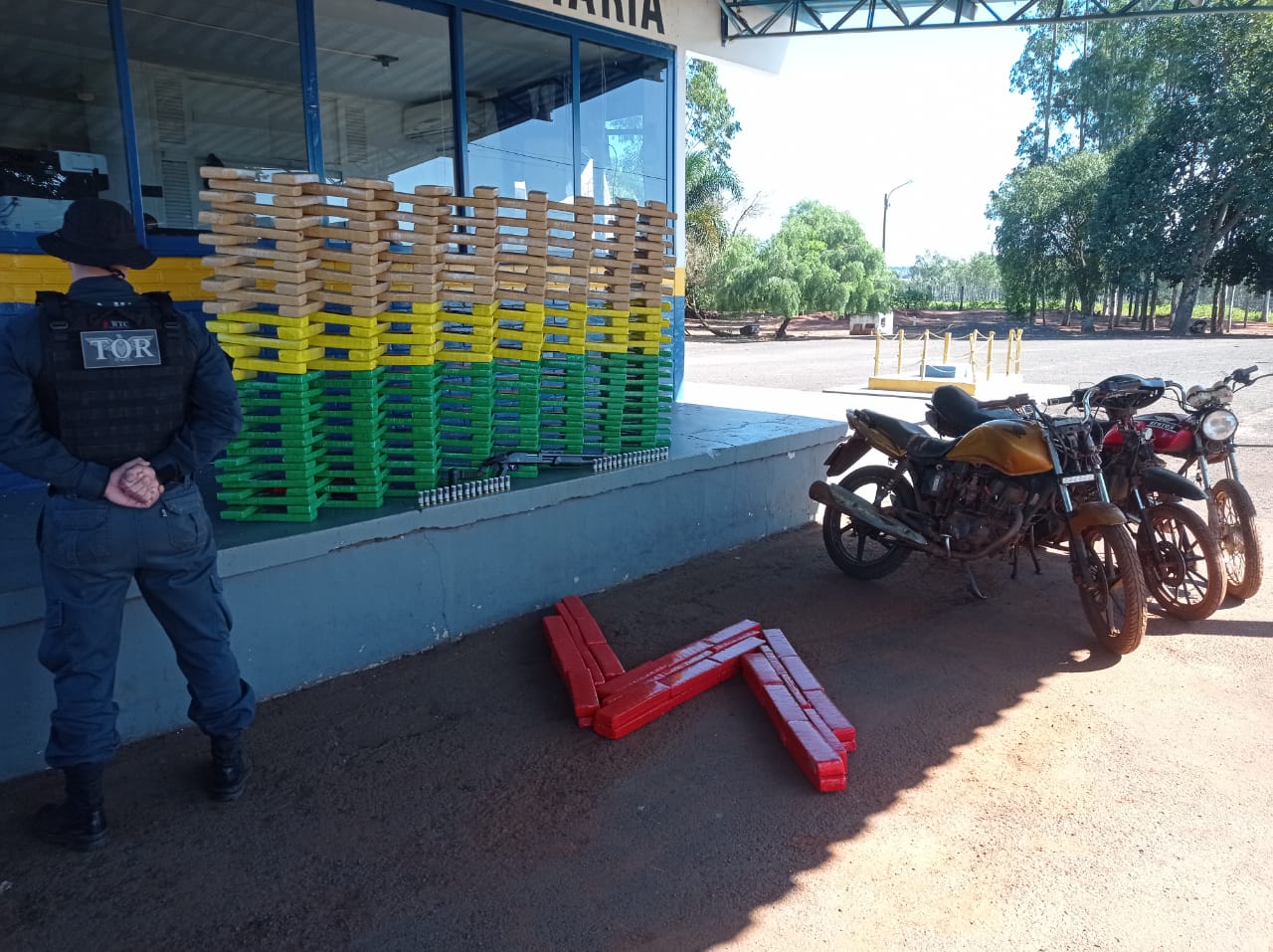 Campo Grande/MS – A equipe do TOR – Tático Ostensivo Rodoviário, do BPMRv, apreendeu nesta sexta-feira (12/04), na região de Amambai, uma carga de entorpecentes e uma espingarda cal. 12. Os Policiais Militares realizavam fiscalização, na zona