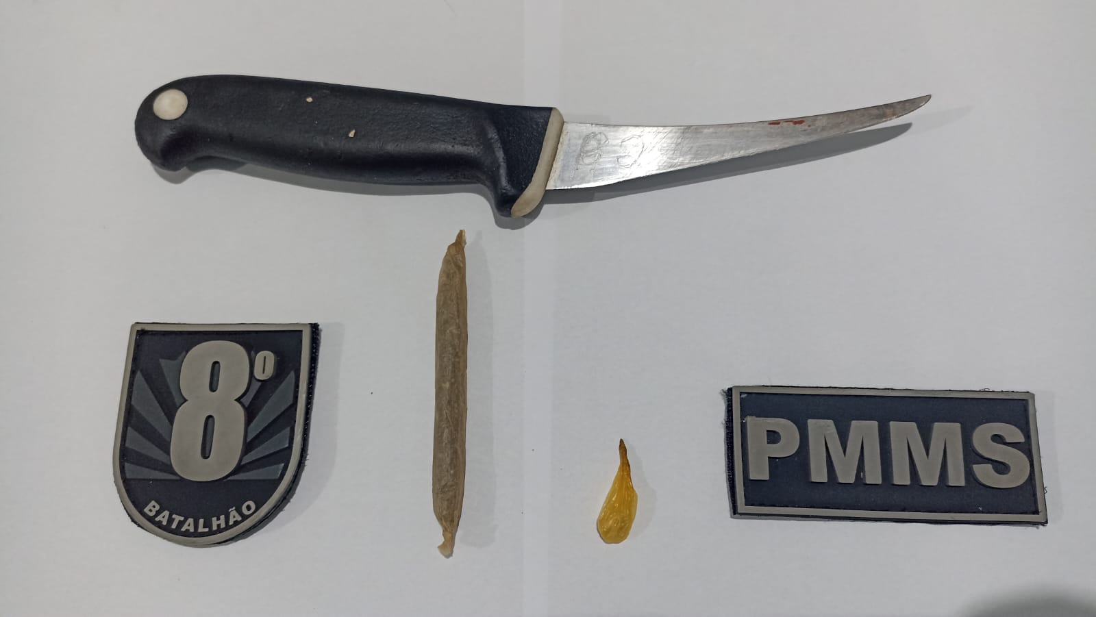 Nova Andradina (MS) – O 8º Batalhão de Nova Andradina, através da equipe de Radiopatrulha de Batayporã conduziu para a delegacia no início da noite de ontem (04), um jovem de 18 anos por porte de arma branca e drogas. A equipe policial realizava