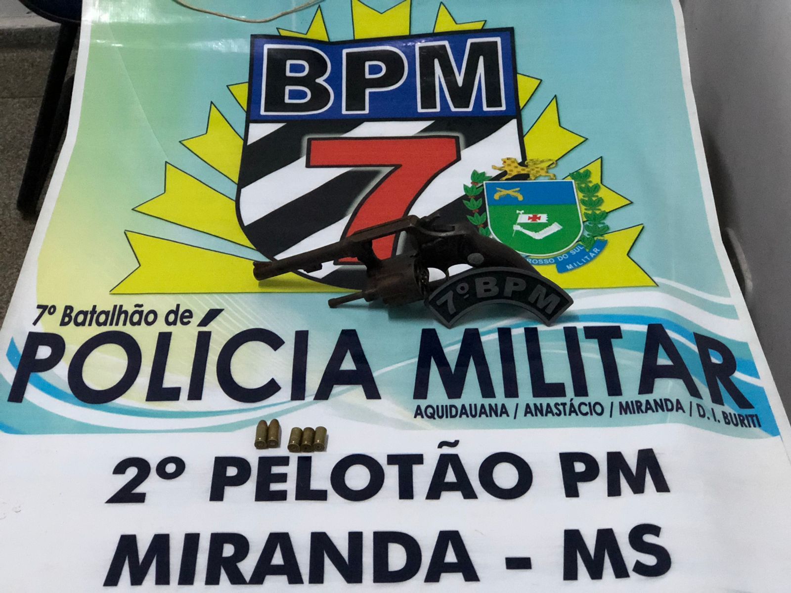 Aquidauana (MS) – Domingo (21), a equipe da Rádio Patrulha de Miranda apreende uma arma de fogo na região central da cidade. Por volta das 23h30min, o centro de operações policiais recebeu denúncias anônimas que havia um homem armado próximo à