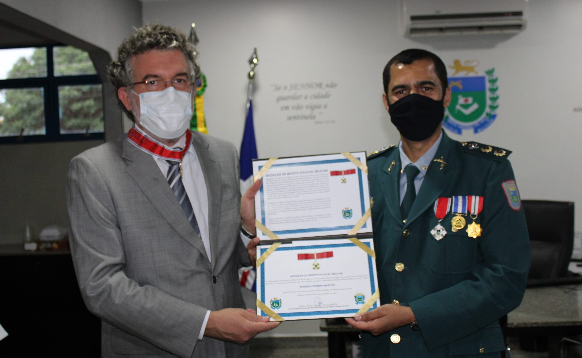 Três Lagoas – MS, no dia 10 de novembro, o Tenente Coronel Paulo Ribeiro dos Santos, Comandante do 2º Batalhão de Polícia Militar, realiza entrega da Medalha do Mérito ao Excelentíssimo Juiz de Direito: Rodrigo Pedrini Marcos. A cerimônia de outorga