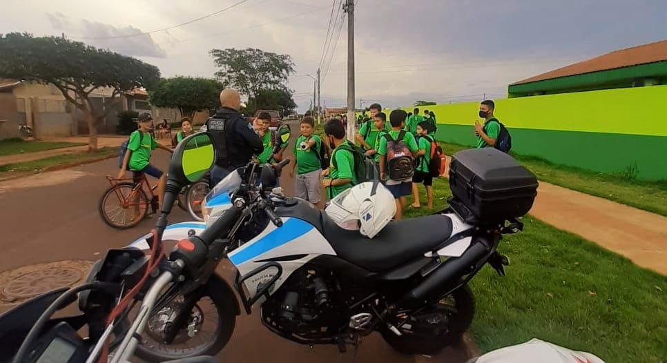 Dourados (MS)- Na tarde desta quinta-feira (28), os policiais militares do Pelotão de trânsito, do 3° Batalhão da Polícia Militar, tiveram uma tarde de interação com crianças na periferia de Dourados. A equipe do pelotão de trânsito realizava rondas