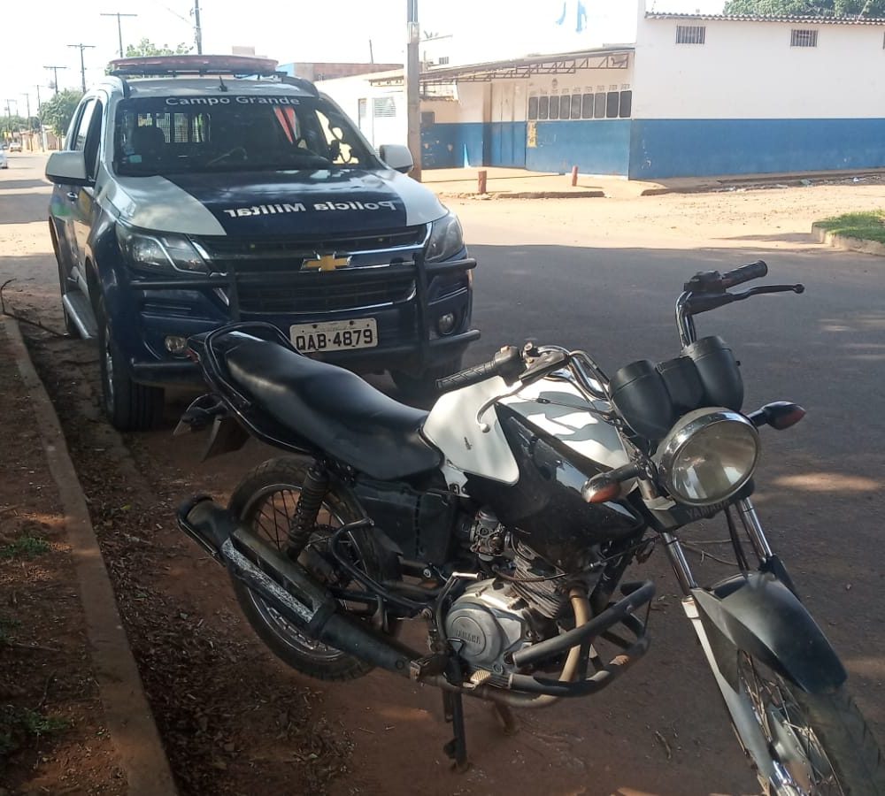 Campo Grande (MS), nesta quinta (30/09), em rondas pelo bairro Lageado, a equipe policial se deparou com um indivíduo em uma moto, sem capacete, que ao ver a viatura tentou fugir, porém foi abordado pela guarnição PM. Em checagem da moto, foi constatado