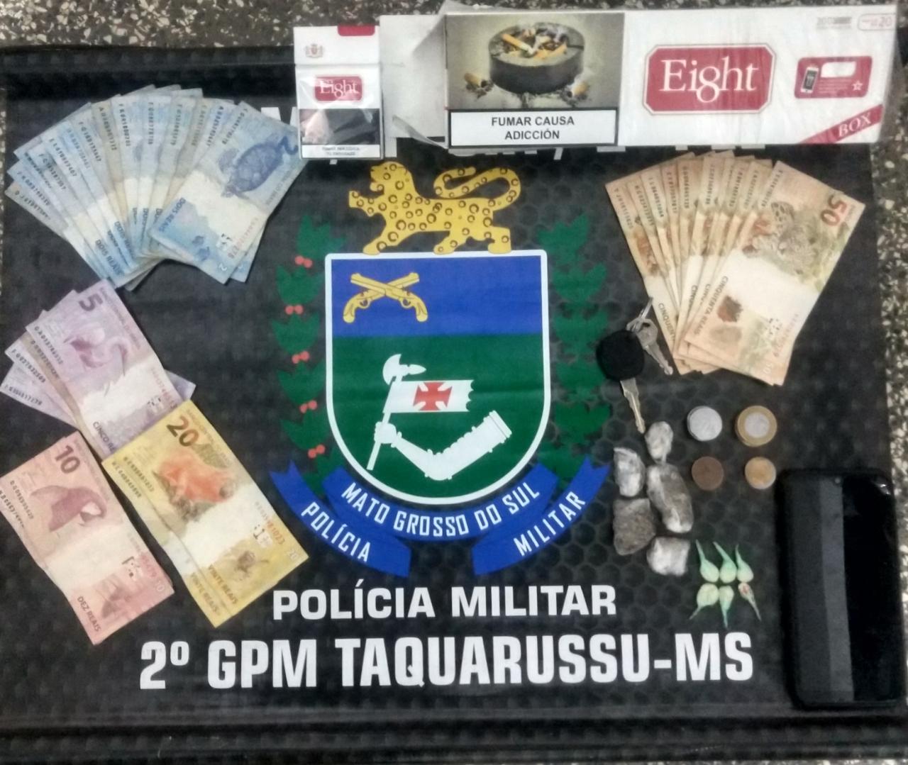 Nova Andradina (MS) – Na tarde de quinta-feira (02), por volta das 15 horas a Radiopatrulha de Taquarussu prendeu dois jovens de 20 e 24 anos por tráfico de drogas e corrupção de menor. O fato ocorreu no Centro da cidade enquanto a equipe policial