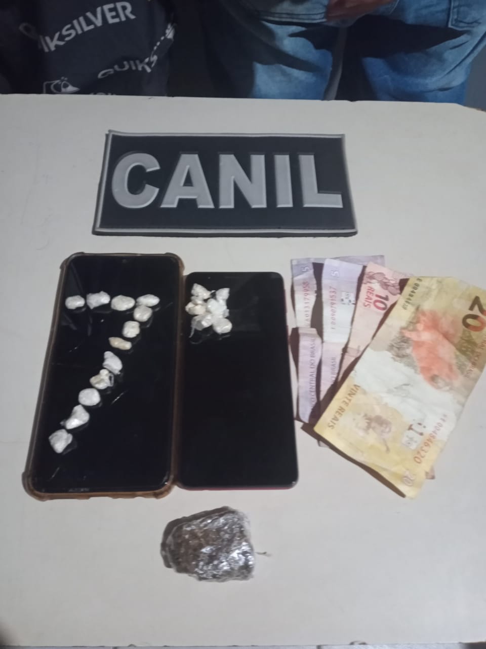Aquidauana (MS) – Na noite de sexta para sábado, após denúncias de transeuntes, Canil Setorial do 7º BPM prende duas pessoas que comercializavam entorpecentes em conveniência! Por volta das 23h, a equipe PM em destaque foi abordada por pessoas que