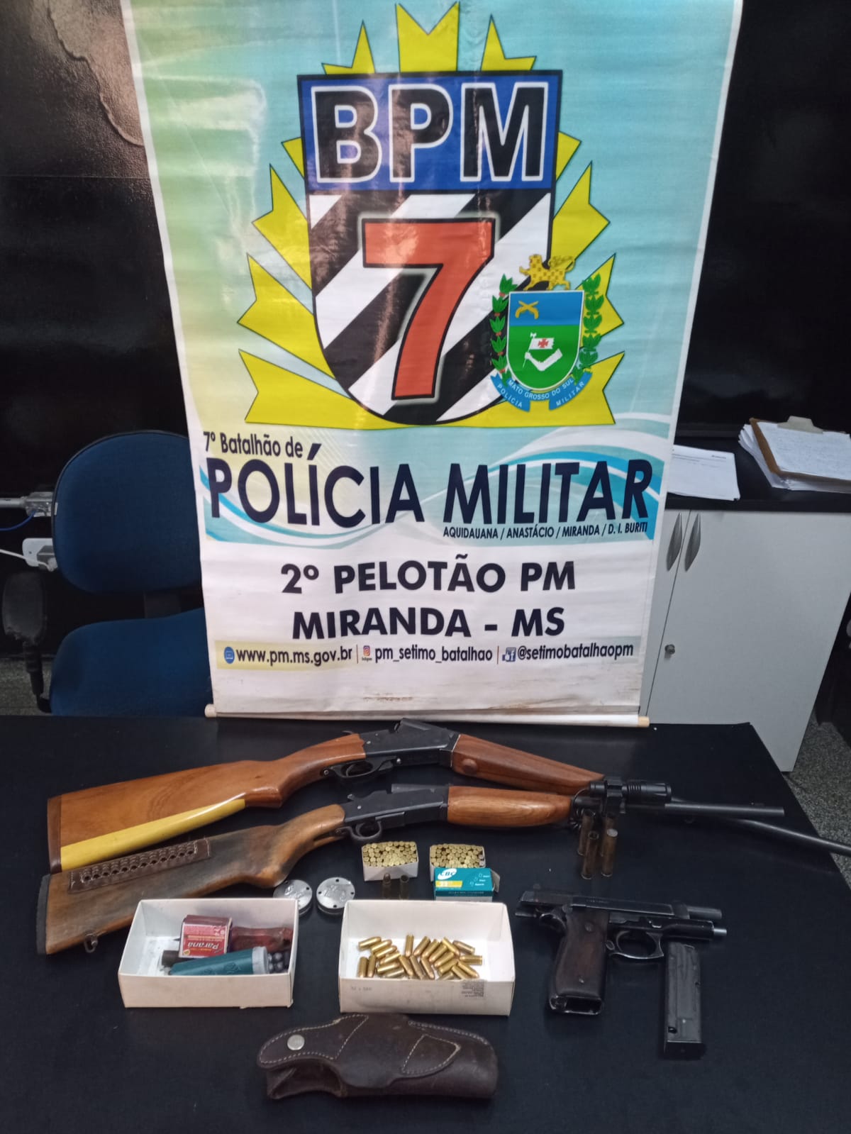 Aquidauana (MS) – Denúncia levou a prisão de uma pessoa que possuía 3(três) armas de fogo sem documentação exigida em lei. Por volta das 13h, a equipe de Rádio Patrulha de Miranda recebeu uma denúncia de um homem de 40 anos o qual relatava ter se