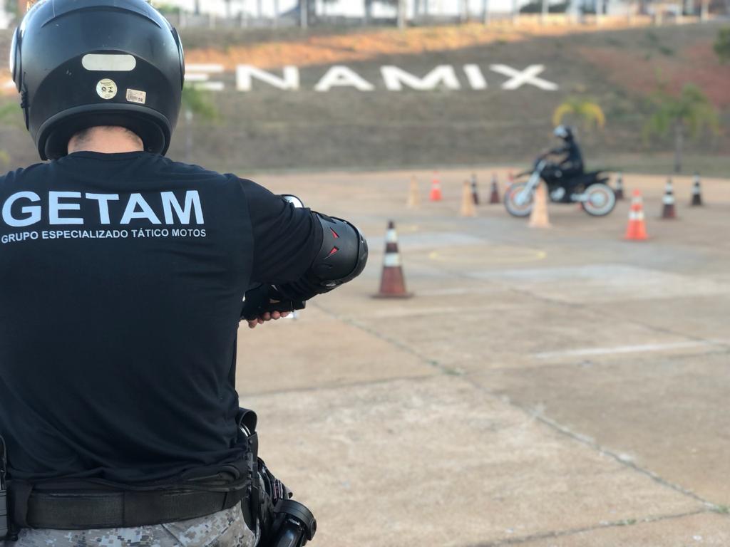 Três Lagoas (MS) no dia 09 de julho os policiais militares do GETAM do 2º Batalhão de Polícia Militar realizaram treinamento de maneabilidade no ARENAMIX. O treinamento visa promover a segurança do policial militar na condução das motocicletas, para