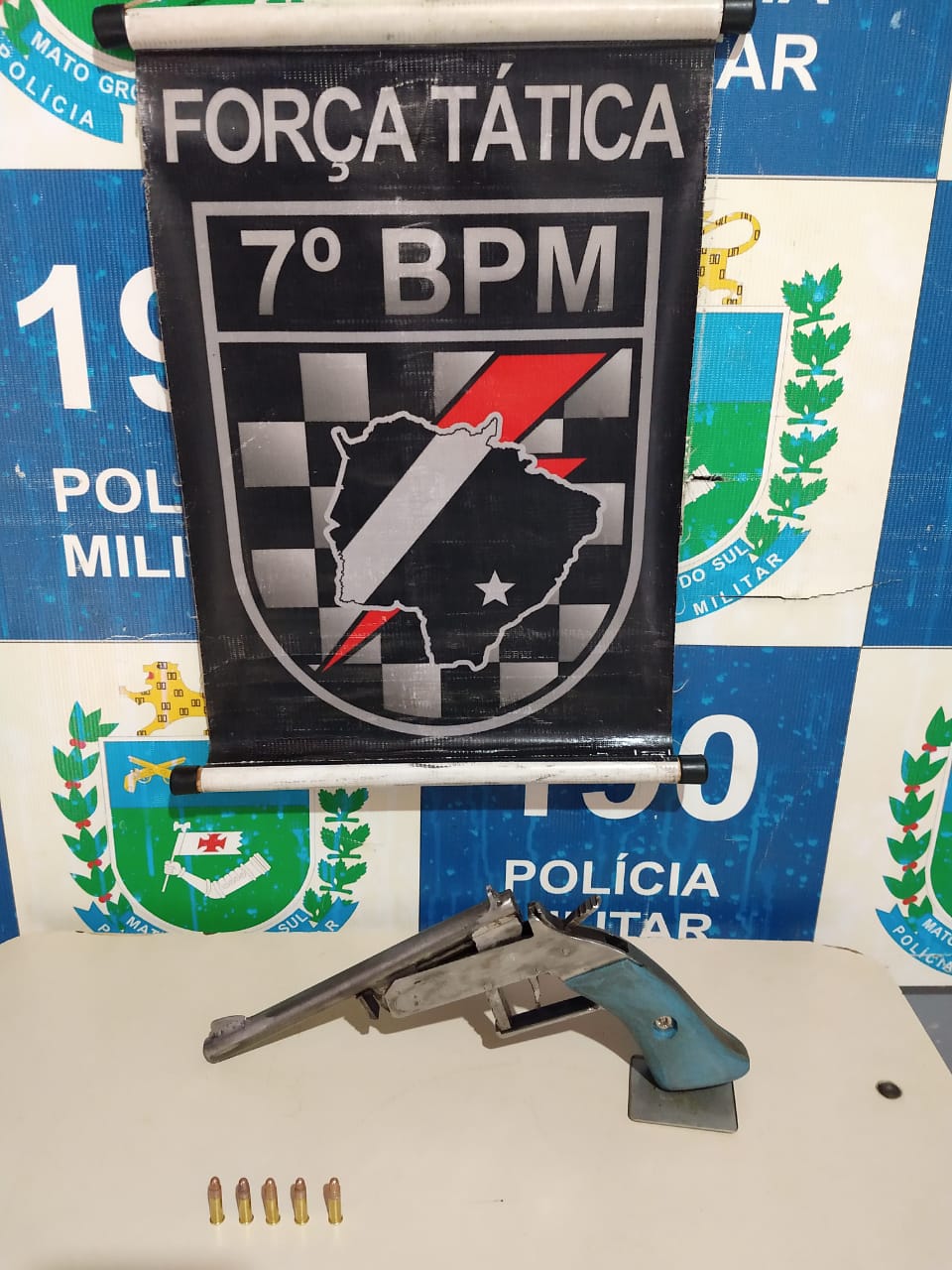 Aquidauana (MS) – Quarta-feira, (30/06), veículo em atitude suspeita é abordado pela equipe da Força Tática e é flagrado com uma arma de fogo. Por volta das 12h, a equipe PM em destaque realizava o patrulhamento ostensivo e preventivo pelo bairro Alto