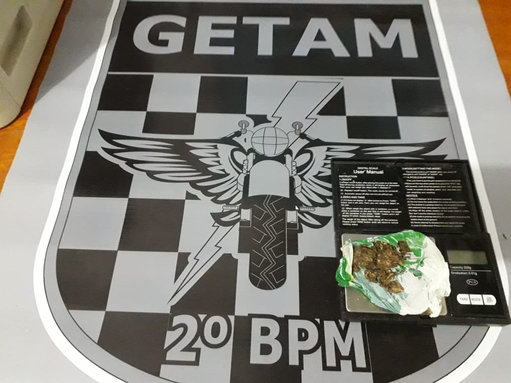 Corumbá (MS) Quarta-feira (23/06) – Esta guarnição do GETAM realizava rondas ostensivas e preventivas na área central, quando um morador fez uma denúncia anônima informando que havia dois indivíduos vendendo drogas em baixo da ponte da treze por