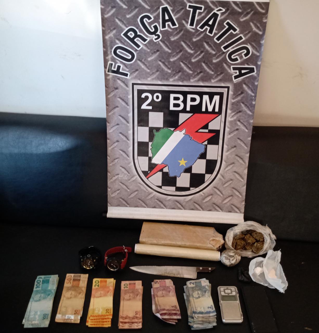 Aquidauana (MS) – Resposta rápida das equipes policiais de serviço soluciona crime de roubo e mais dois outros crimes, tráfico de drogas e receptação! Por volta de 21h do dia 18/06, a equipe de Rádio Patrulha de Dois Irmãos do Buriti recebeu uma