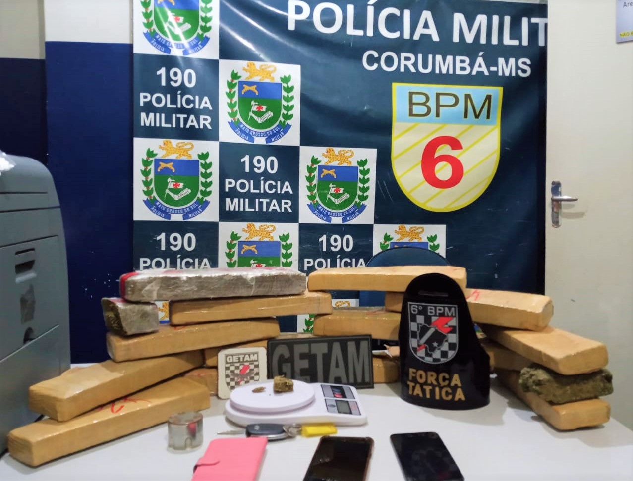 Corumbá (MS) Sábado (12/06) – A equipe do GETAM (Grupamento Especializado Tático de Motos) juntamente com o apoio da Força Tática, apreenderam pouco mais de 12 kg de maconha, na Rua Joaquim Murtinho, por volta das 19h00. Após abordagem a um