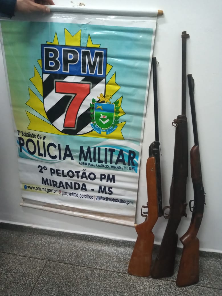 Aquidauana (MS) – Domingo, 09/05/2021, a equipe da Rádio Patrulha apreende duas armas de fogo durante atendimento de ocorrência de violência doméstica. Por volta das 19h, a equipe PM em destaque foi empenhada para atender uma ocorrência de violência