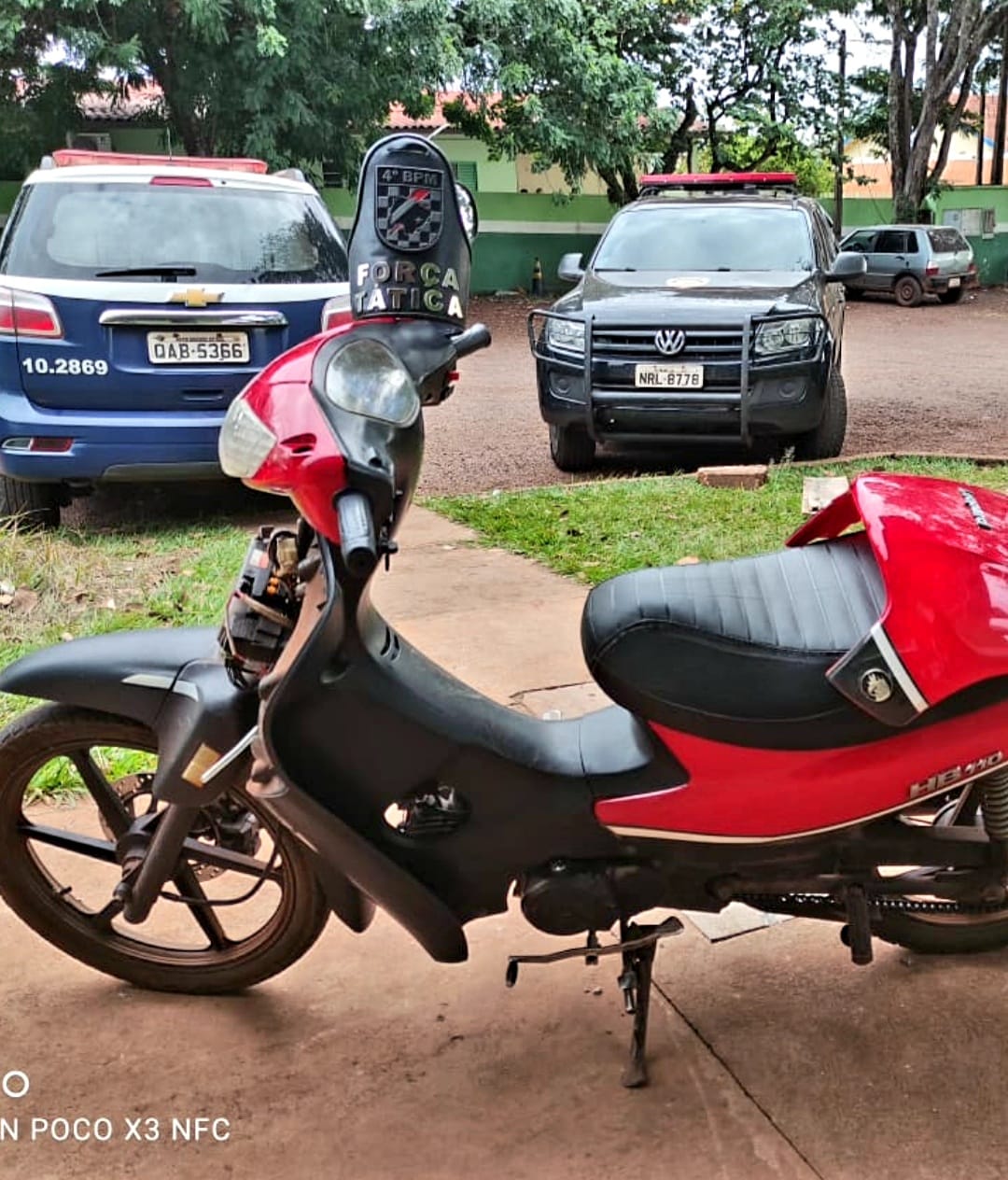 Ponta Porã (MS) – A Força Tática do 4º Batalhão de Polícia Militar de Ponta Porã recuperou na manhã desta terça-feira (11/5) uma motocicleta Importada Leopard 110 CC, cujo roubo com emprego de arma de fogo teria ocorrido na tarde de ontem na