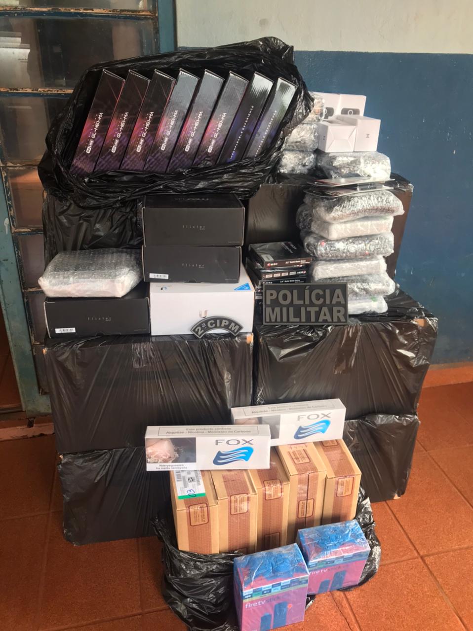 Maracaju (MS) – Na manhã de hoje (26.4), durante a Operação Hórus, coordenada pelo Comando de Policiamento de Área – 1 (CPA-1), a Polícia Militar apreendeu diversos produtos de contrabando e descaminho, na Rodovia MS-462, no município de