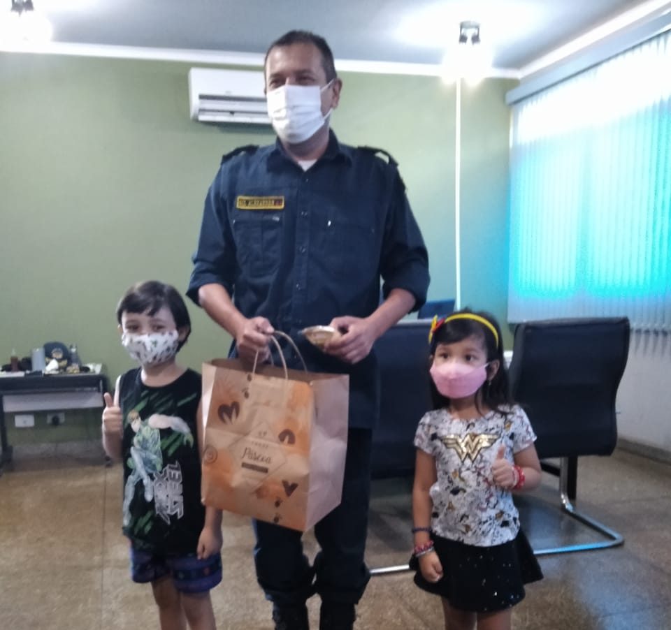Três Lagoas (MS) – Nesta terça-feira (06.04), o 2º Batalhão de Polícia Militar (2º BPM), recebeu a grata visita dos irmãos Théo Tatsuo e Melissa Akemy, acompanhados de sua mãe Tatiane Tiemy. Os Irmãos e sua mãe foram recepcionados pelo