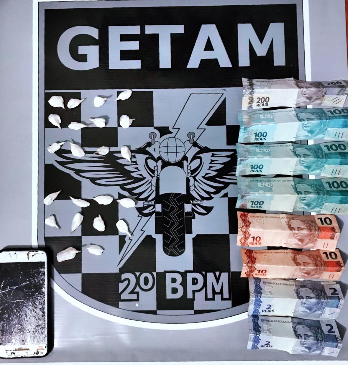 No dia 07 de abril, por volta das 16h50min, policiais militares do GETAM do 2º Batalhão realizaram a prisão de autor de tráfico de drogas. Nesta quarta-feira, quando os motociclistas policiais militares realizavam policiamento ostensivo preventivo pelo