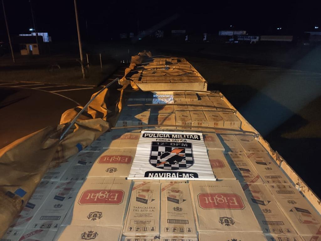 Itaquiraí (MS) – Na noite de sábado (08/02), por volta das 21h15min, uma equipe de Força Tática do 12º Batalhão de Polícia Militar, no âmbito da Operação Hórus, apreendeu, aproximadamente, 50.000 (cinquenta mil) pacotes de cigarros