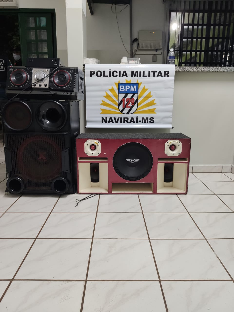 Naviraí (MS) – Na noite de sábado (02/01), policiais militares lotados no 12º Batalhão de Polícia Militar de Naviraí realizaram duas apreensões de aparelhagens sonoras envolvidas em perturbação do sossego. Durante atendimento de denúncias de