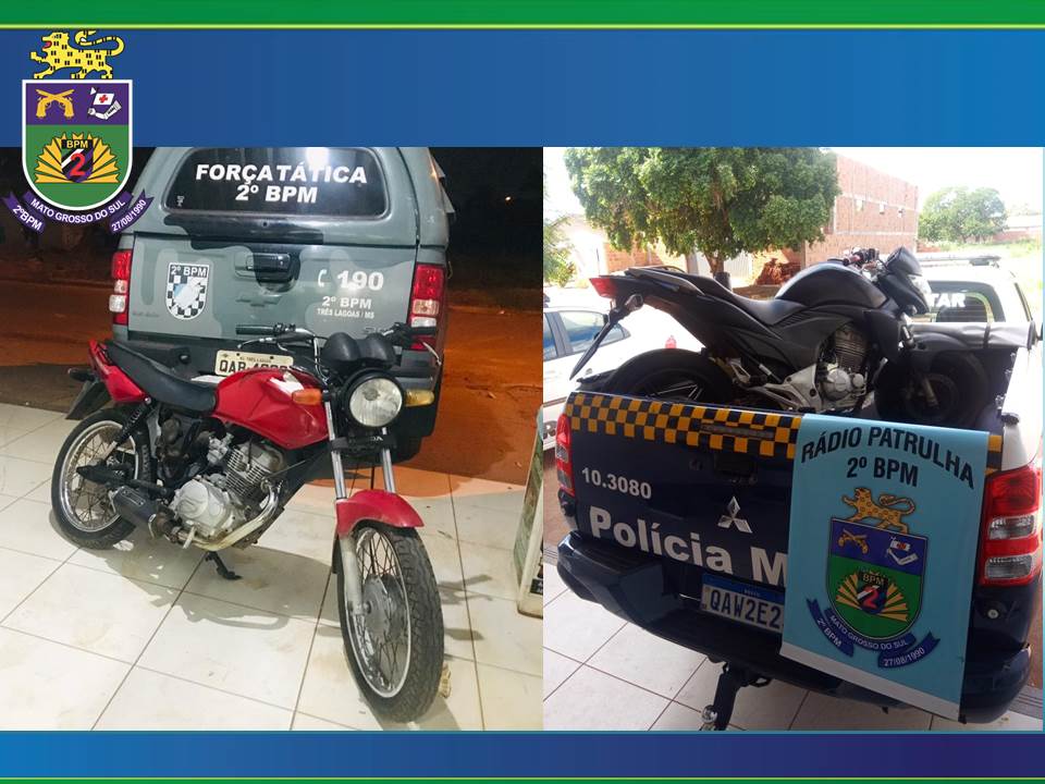 TRÊS LAGOAS (MS) – No último domingo (27) a Polícia Militar recuperou 02 motocicletas com queixa de furto, e 02 adolescentes foram apreendidos. Por volta das 07h, policiais militares compareceram na Rua trinta e seis no bairro Vila Piloto, onde 02