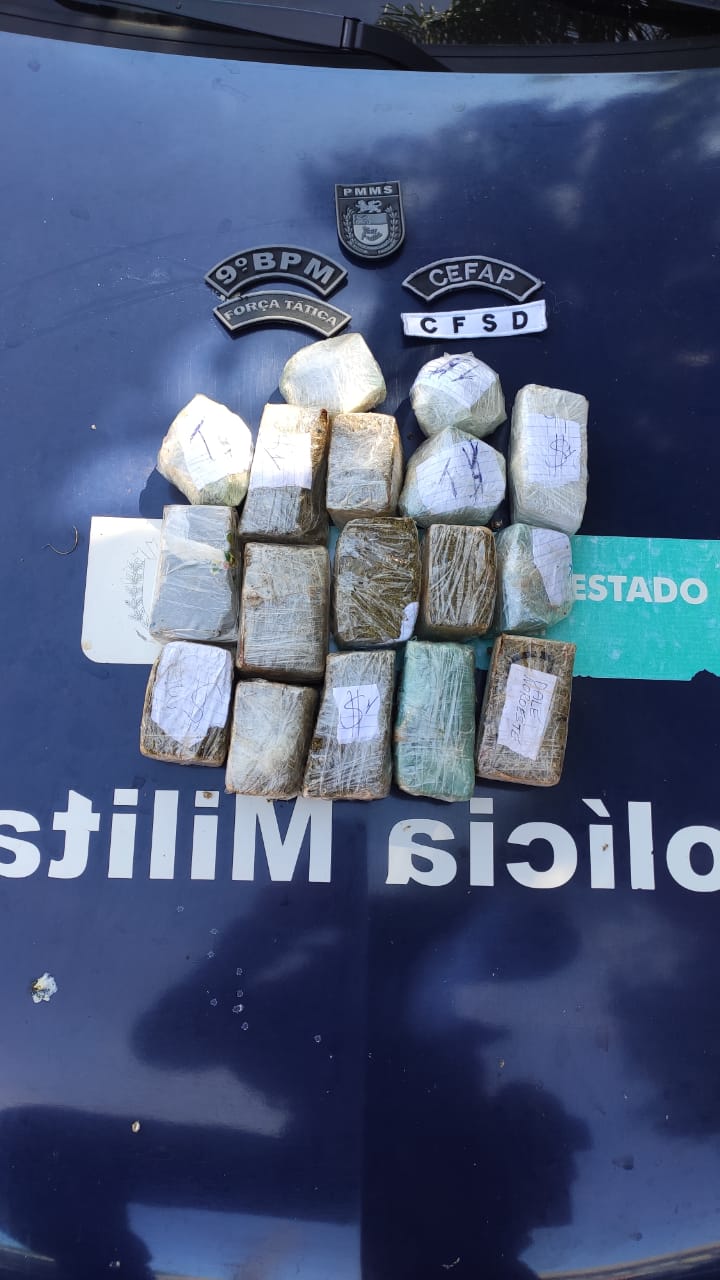 Campo Grande (MS)- A equipe Força Tática do 9ºBatalhão de Polícia Militar em rondas ostensivas preventivas pelo bairro Carandá Bosque 3, por volta das 17 horas e 30 minutos, visualizou um cidadão em atitude suspeita em frente a uma residência, ao
