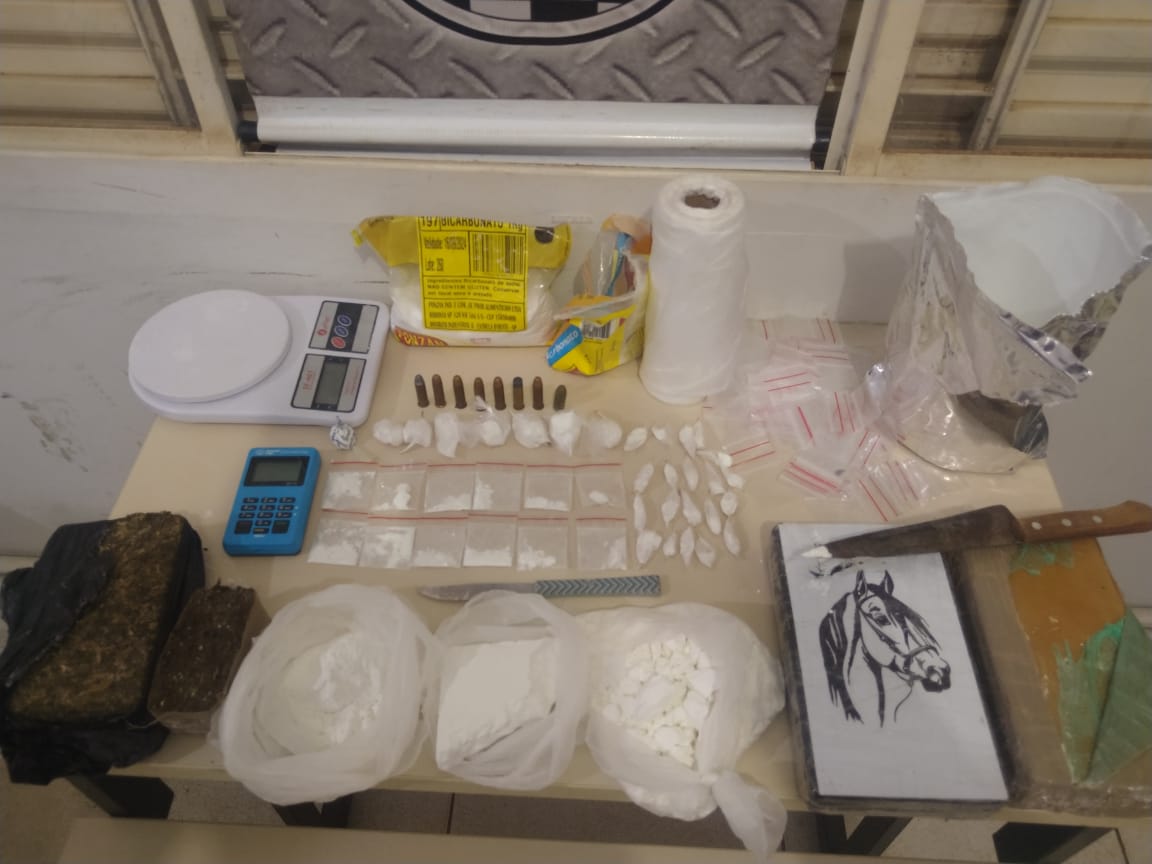Campo Grande (MS) – Policiais Militares da 11ª Companhia Independente de Polícia Militar apreenderam cinco armas de fogo, mais de 40kg de drogas e três foragidos da justiça, incluindo homem com mandado de prisão por Tráfico Internacional de Arma