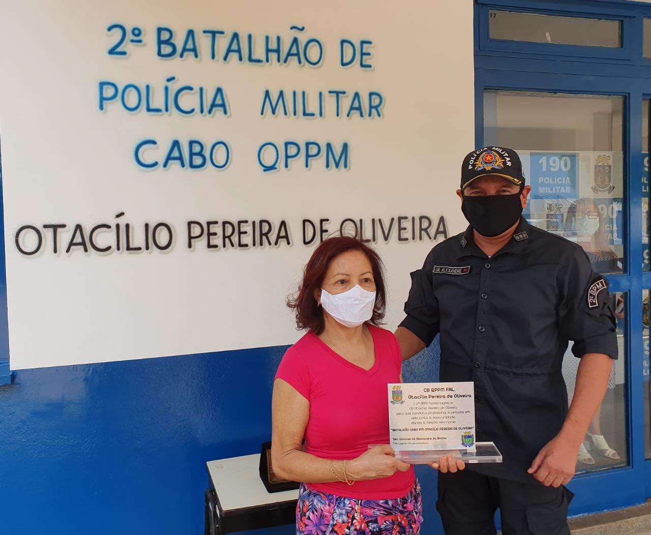 TRÊS LAGOAS (MS) – Na manhã desta sexta feira (16/10), o Tenente-coronel QOPM Gil Alexandre da Rocha presidiu uma homenagem à viúva do policial militar Cabo PM Otacílio Pereira de Oliveira, atual denominação do Quartel do 2º Batalhão de Polícia