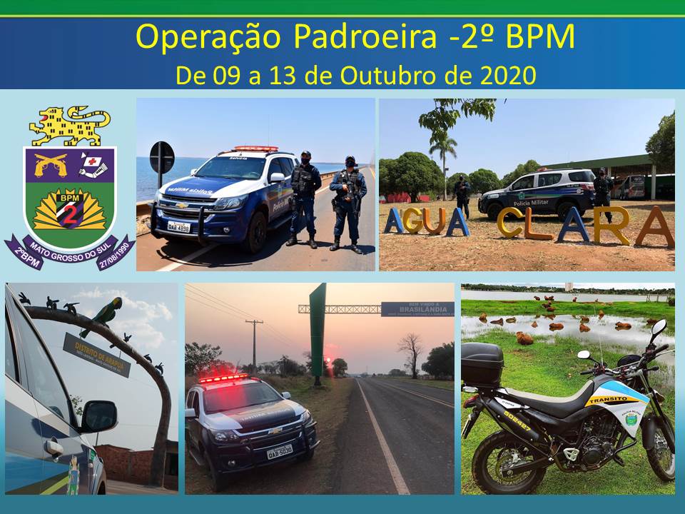 Campo Grande (MS) – A Polícia Militar de Mato Grosso do Sul realizou durante os dias 09 a 13 de outubro “Operação Padroeira ”, com o desenvolvimento de ações preventivas por todo o Estado. A operação que teve início na última sexta-feira e foi