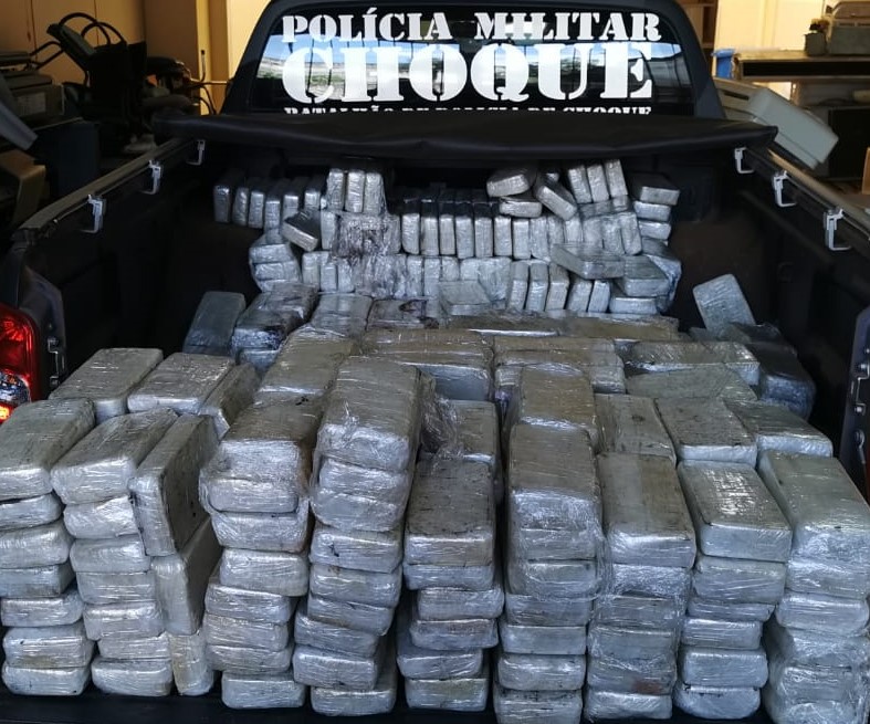 Campo Grande (MS) – Durante Operação Hórus, equipes do Batalhão de Polícia Militar de Choque – BPMChoque, receberam denúncia de que um caminhão estacionado no pátio de um estabelecimento comercial na BR 060 estaria com uma carga de drogas. As