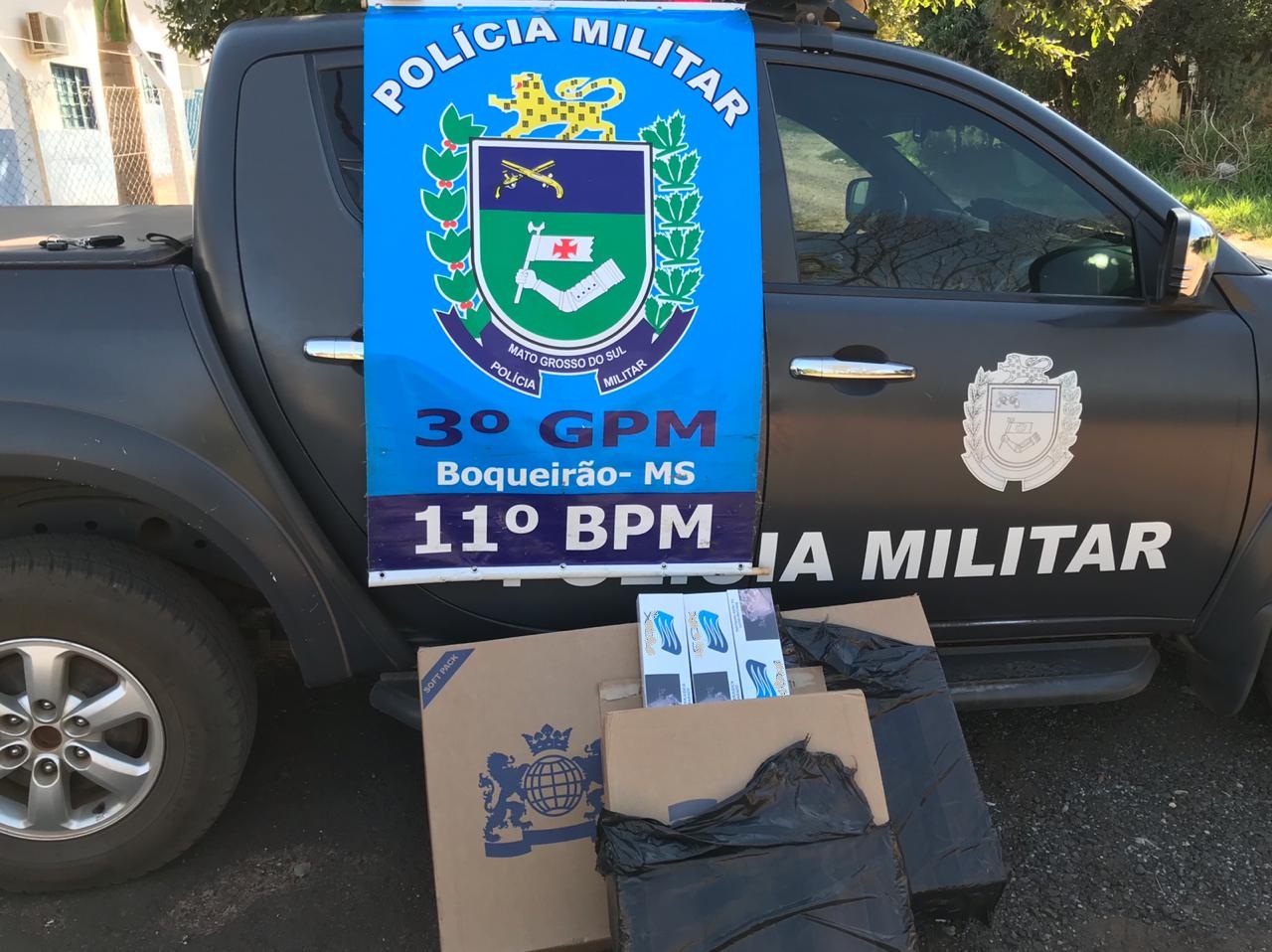 Jardim (MS) – A guarnição da polícia militar do Distrito do Boqueirão, nesta tarde (27), apreendeu 03 (três) caixas de cigarros de origem estrangeira. Os policiais militares enquanto realizavam o policiamento ostensivo/preventivo no perímetro urbano