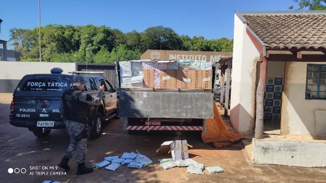 Jardim (MS) – Na manhã de hoje (03.07), após uma denúncia anônima efetuada no Centro de Atendimento e Despacho do 11º Batalhão de Polícia Militar, de que havia contrabando de cigarros na estrada vicinal conhecida como Apa Poré, as guarnições