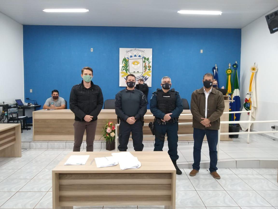 Jaraguari (MS) – Na manhã desta sexta-feira (03/07) o Comandante-Geral da PMMS, coronel PM Marcos Paulo Gimenez e o Comandante do Esquadrão Independente de Polícia Militar Montada, tenente-coronel PM Guilherme Dantas Lopes, foram recebidos na Câmera