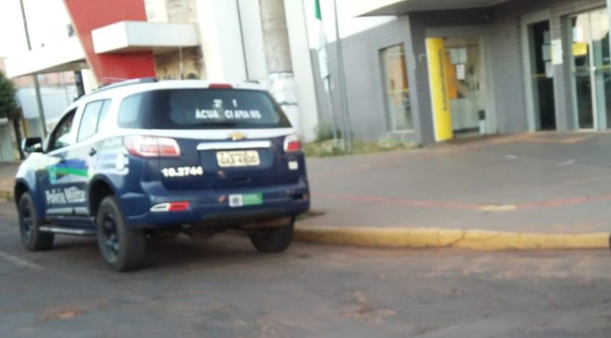 ÁGUA CLARA (MS) – Na manhã de sábado (9/5) por volta das 05h, uma empresa de segurança eletrônica solicitou apoio da Polícia Militar para averiguar um possível Furto em andamento na agência do Banco do Brasil, pois as alarmes haviam disparado e