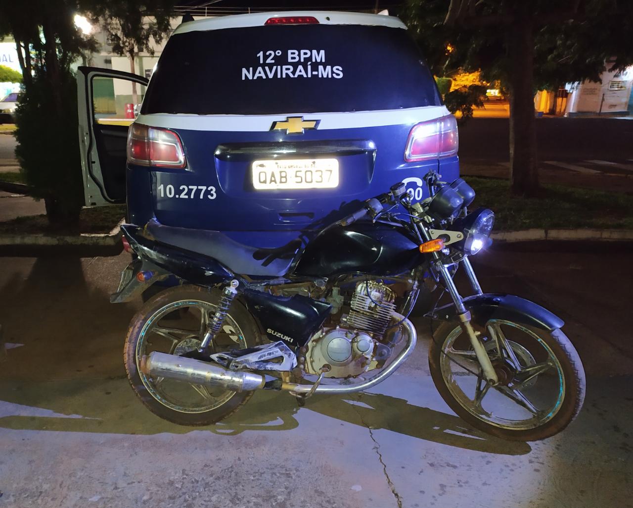 Naviraí (MS) – Na noite de domingo (19/04), por volta das 20h30, policiais militares lotados no 12º Batalhão de Polícia Militar de Naviraí, foram informados via telefone de emergência (190) de que dois indivíduos haviam abandonado uma motocicleta na