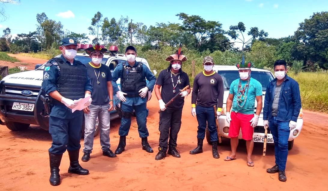 Japorã (MS) – Empenhados na luta para conter o avanço do novo coronavírus em Japorã, Município localizado no extremo sul de Mato Grosso do Sul, na fronteira com o Paraguai, policiais militares estão em parceria com a liderança da Aldeia Indígena