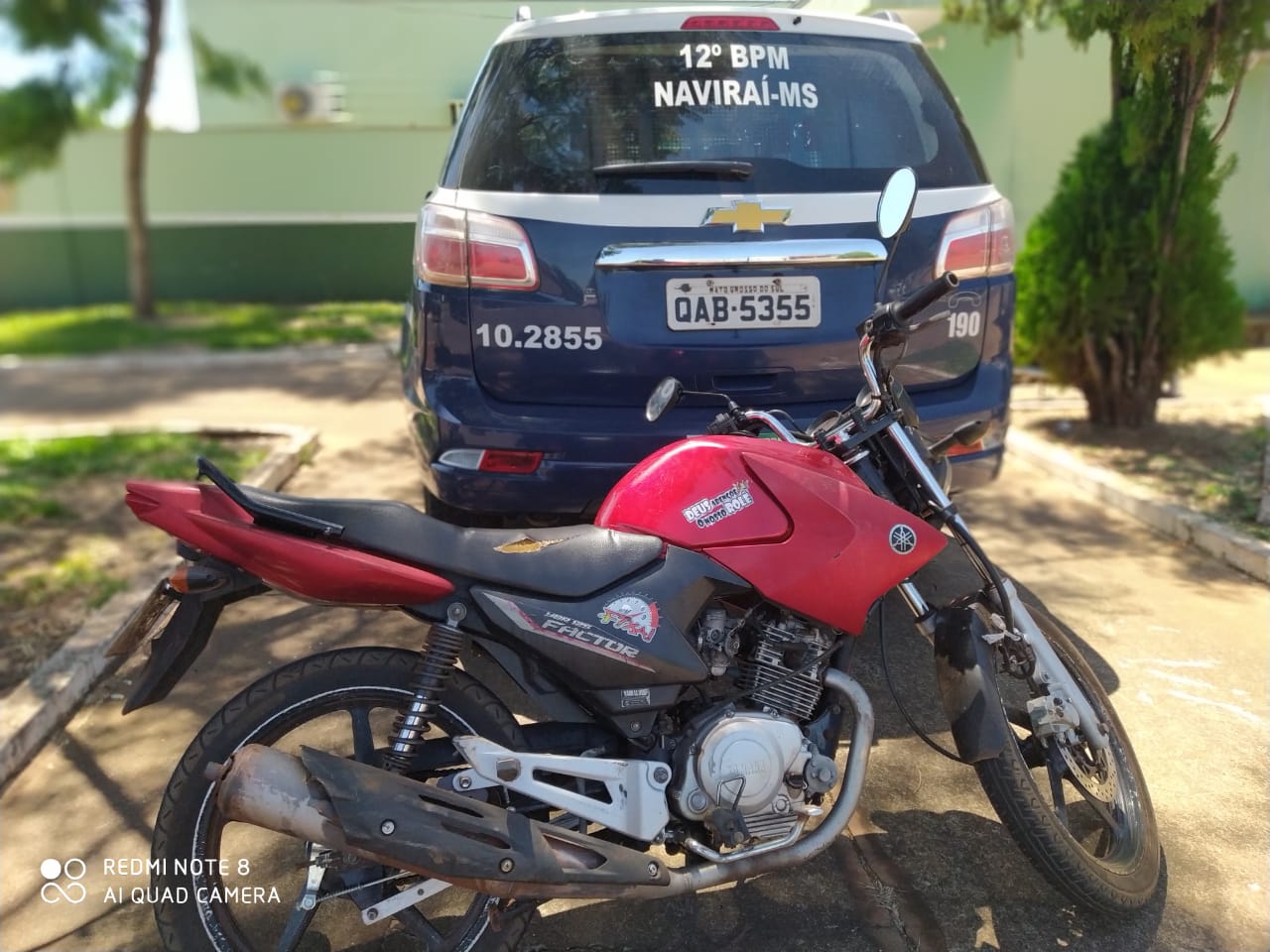 Naviraí (MS) – Na manhã desta terça-feira (03/03), por volta das 11h, policiais militares lotados no 12º Batalhão de Polícia Militar de Naviraí, receberam denúncia, via telefone de emergência (190), de que havia uma motocicleta furtada em uma