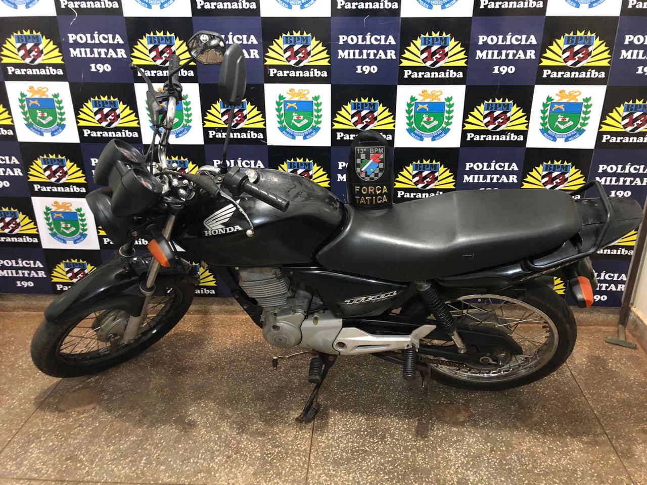 Paranaíba (MS) – No último sábado (29/02), por volta das 20h, a equipe da Força Tática da Sede do 13° Batalhão de Polícia Militar realizava patrulhamento ostensivo e preventivo pelo Bairro Industrial de Lourdes quando visualizaram uma motocicleta