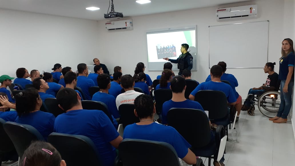 Campo Grande (MS) – Nesta quina-feira, 28 de novembro de 2019, policiais militares do Pelotão Escolar do 1º Batalhão de Polícia Militar do Estado de Mato Grosso do Sul, estiveram na sede da APAE – MS, ministrando palestra aos assistidos e