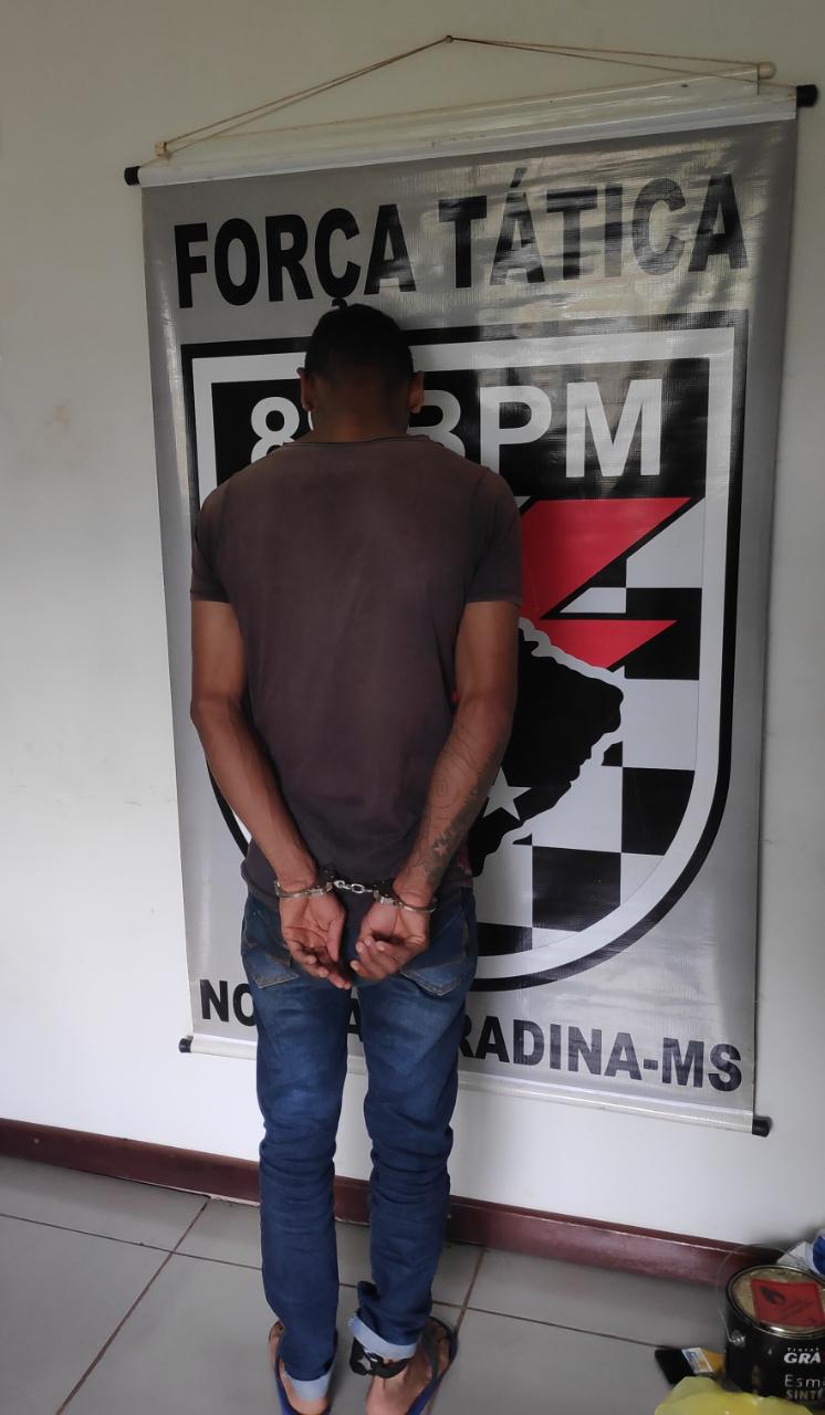 Nova Andradina (MS) – Durante policiamento ostensivo e preventivo no período vespertino no bairro Centro Educacional, policiais militares da equipe de Força Tática do 8º Batalhão de Polícia Militar (8º BPM) prenderam um jovem de 18 anos após ser
