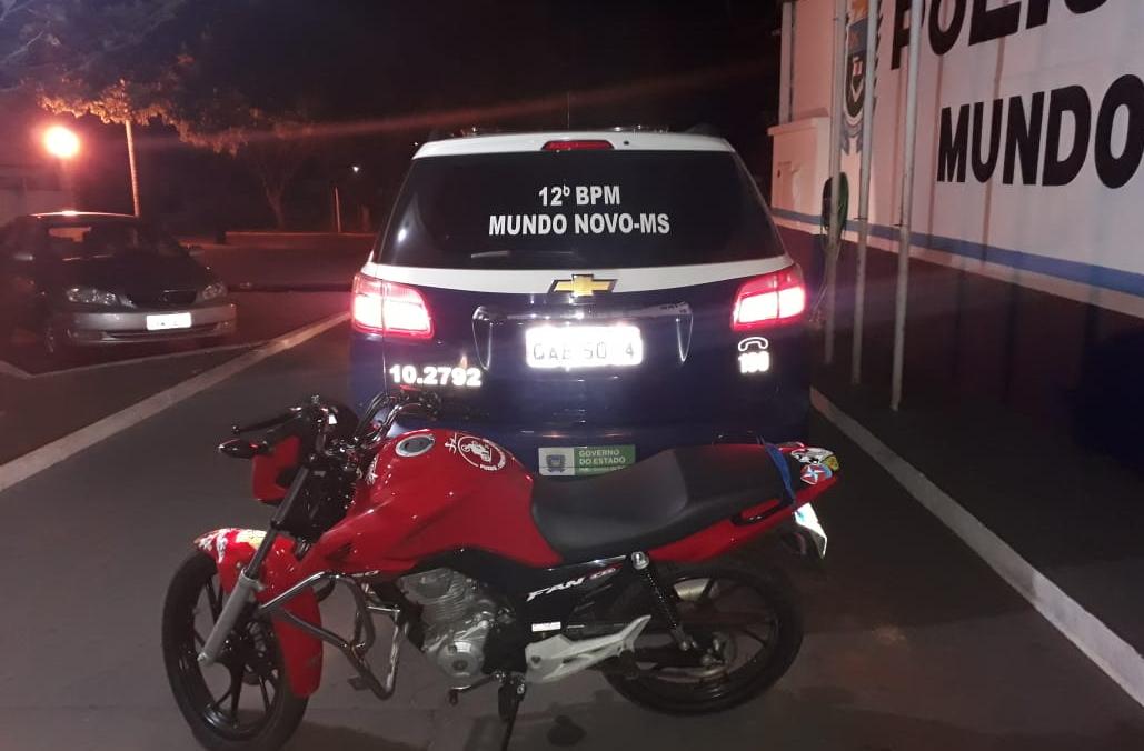 Mundo Novo (MS) – Na noite de domingo (13/10), por volta das 23h30min, policiais militares lotados no 3º Pelotão de Polícia Militar de Mundo Novo, receberam denúncia, via telefone de emergência (190), de que um indivíduo, conduzindo uma motocicleta