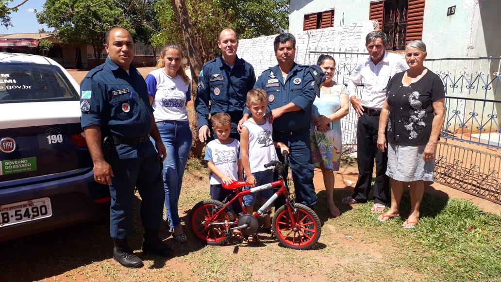 Na manhã desta quarta-feira (09/10), Policiais Militares da 2ª Cia de Polícia Militar de Iguatemi, presentearam o menino Davi Luis, que é morador da Vila Operária. As guarnições de serviço com o 3º Sargento Ricardo e os Cabos Castilho e Paulo Marcos