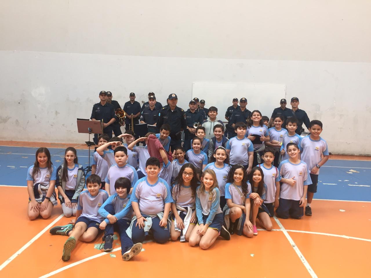 O Corpo Musical da PMMS foi convidado a participar da abertura da Semana da Pátria em colégio da cidade de Campo Grande. O evento ocorreu na data de 02 de setembro, com a presença de professores e alunos, além de convidados da direção. Os músicos