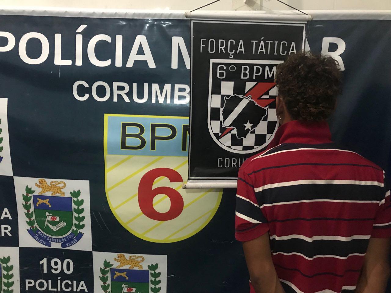 Corumbá (MS) Neste Domingo (15/07) A equipe de Rádio Patrulha de Ladário, estava em rondas na Rua Minas Gerais no bairro Cristo Redentor por volta das 10h00, quando avistaram um individuo em atitude suspeita. Após abordagem e checagem via CIOPS, foi