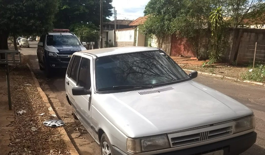 Campo Grande (MS) Neste sábado por volta das 13h40 a equipe da Base Comunitária do Cophatrabalho/5ª CIPM recebeu uma denuncia anônima de que na Rua Dolores, vila Alba havia um veículo abandonado. A equipe PM checou a placa do Fiat Uno de cor cinza