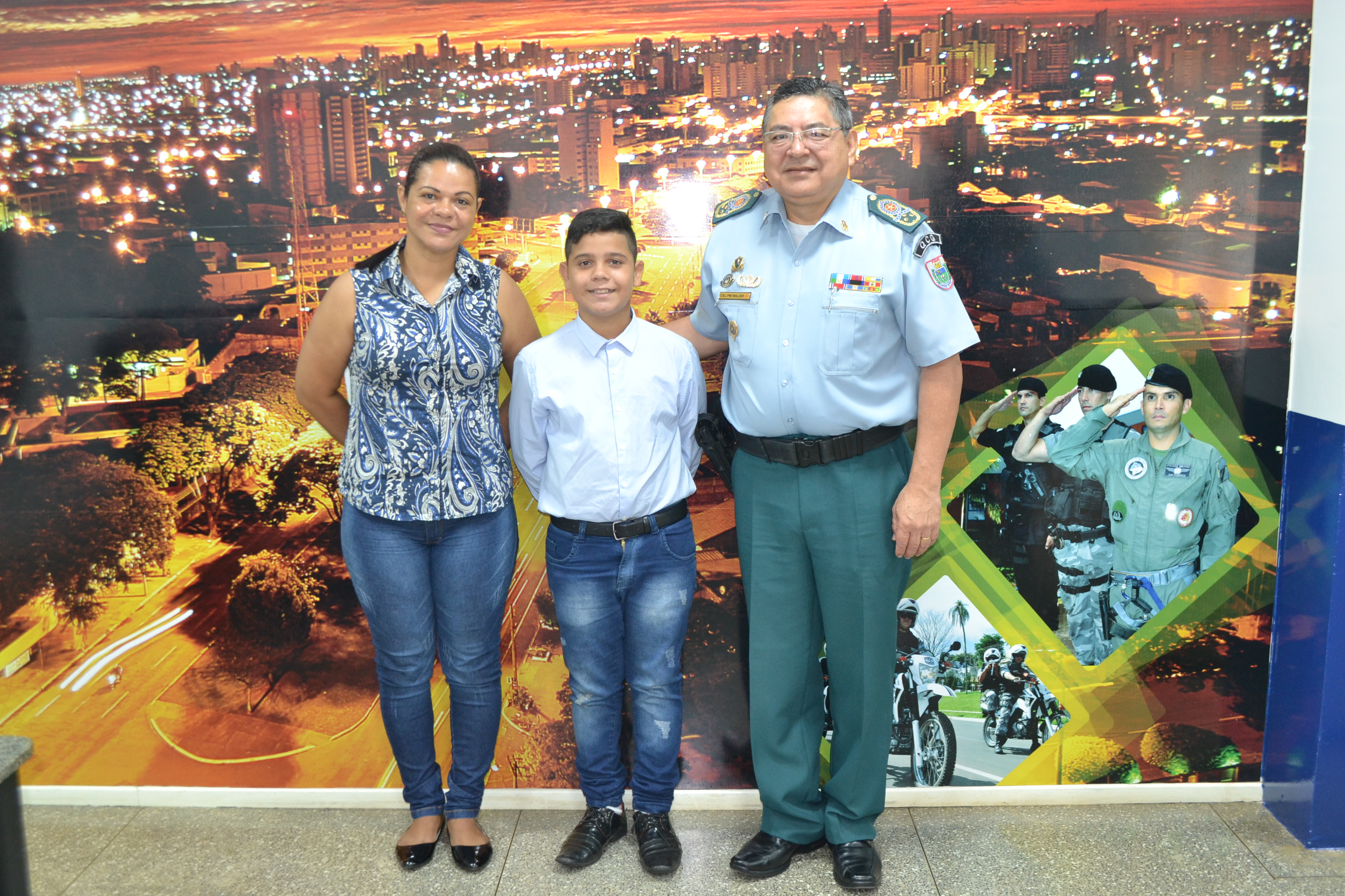 Campo Grande (MS) – Na manhã dessa quinta-feira (17), o Comandante-Geral da PMMS, Coronel PM Waldir Ribeiro Acosta recebeu a mãe Shirlei Lima de Amaral e seu filho Edson Otavio de 12 anos que tinha o sonho de conhecer o Quartel do Comando Geral e seu