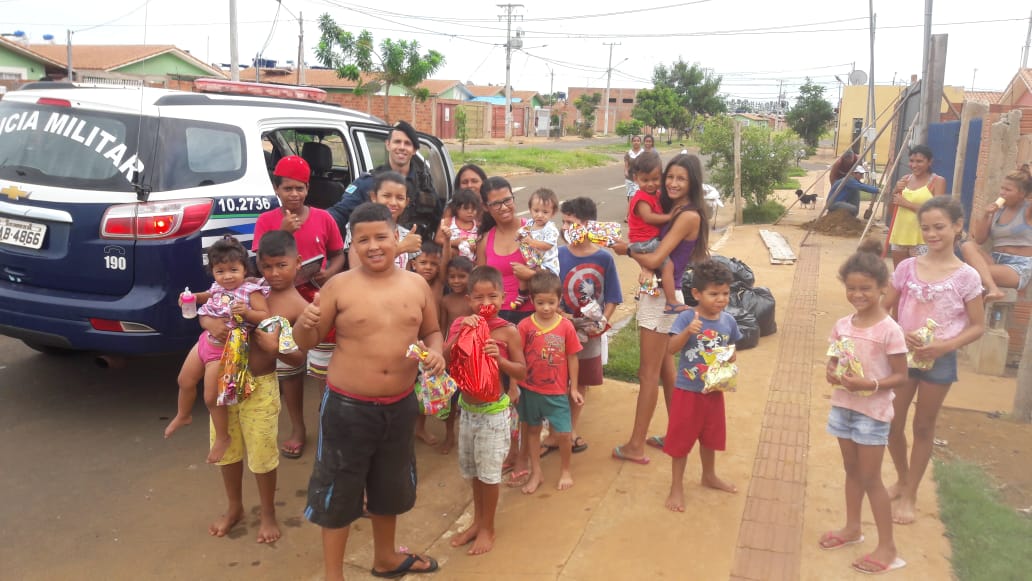 Campo Grande (MS) – A guarnição da 10ª Companhia Independente de Polícia Militar distribuiu presentes para crianças carentes na tarde de ontem (24.12) na Região Urbana do Lagoa. Neste período natalino o objetivo seguiu em proporcionar a alegria