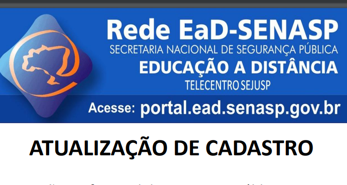 Polícia Militar de Mato Grosso do Sul informa aos profissionais da Segurança Pública que os cadastros desatualizados na plataforma EaD Senasp serão excluídos. Todos os campos disponíveis em “Dados Pessoais” devem ser atualizados.