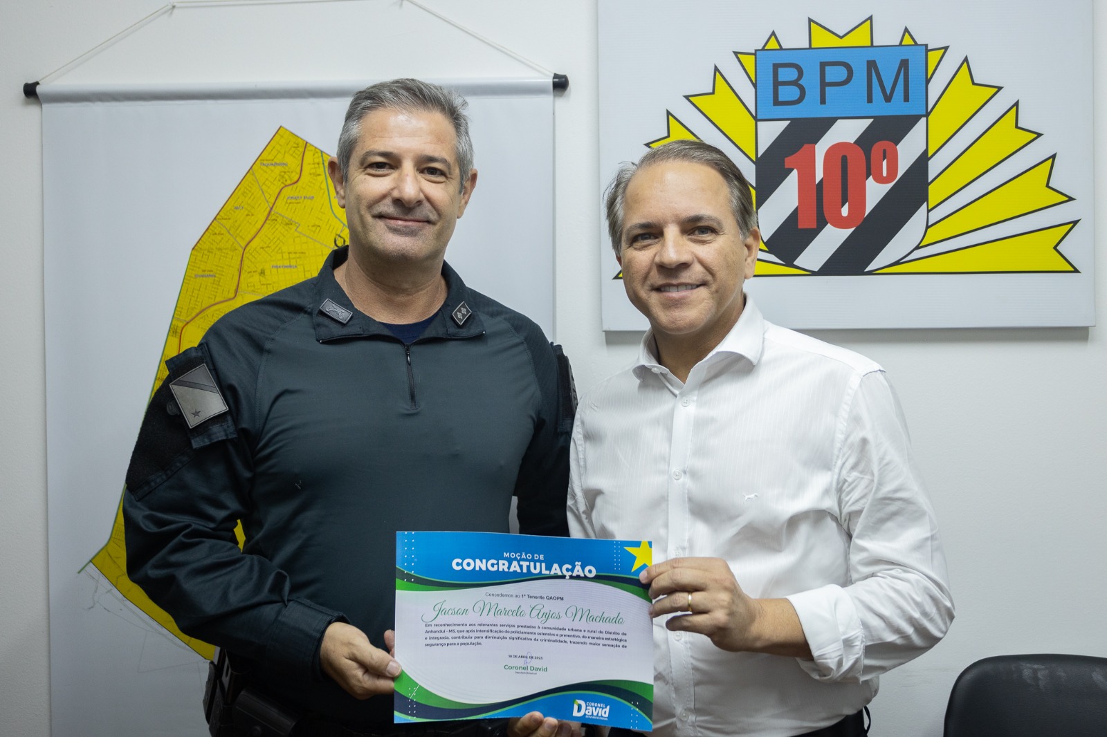 Campo Grande (MS) – Nesta segunda-feira, dia 22/05, o Tenente-Coronel Anderson Machado Padilha, comandante do 10º Batalhão de Polícia Militar, recebeu a ilustre visita do Deputado Estadual Carlos Alberto David dos Santos, ex-Comandante Geral da PMMS.