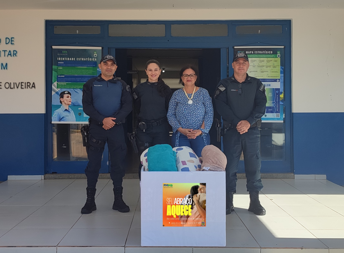 Três Lagoas – MS, no dia 24 de maio, o Tenente Coronel PM Mauro Cesar Sales Ormay, Comandante do 2º Batalhão de Polícia Militar realizou a entrega dos itens de inverno arrecadados por meio da Campanha “Seu Abraço Aquece”, ação que foi uma