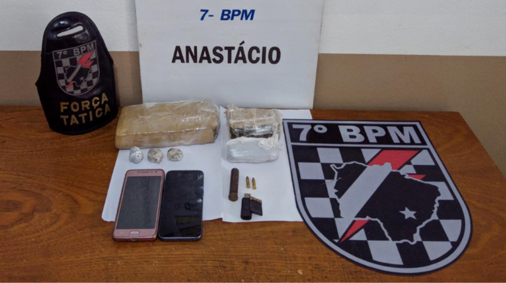 Aquidauana (MS) – Uma ação conjunta entre as equipes de Força Tática e Radiopatrulha de Anastácio, ambas do 7º Batalhão de Polícia Militar, resultou na apreensão de um adolescente e prisão de uma mulher, encontrados com tabletes e outras porções