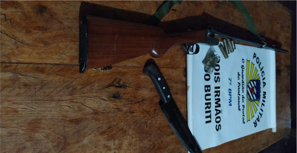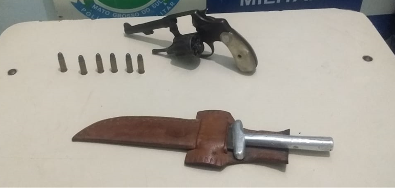Aquidauana (MS) – A equipe de Radiopatrulha do 7º Batalhão de Polícia Militar em Aquidauana apreendeu uma arma de fogo, munições e uma faca, em uma ocorrência atendida no dia 16.05, por volta das 21 horas, no Bairro São Pedro. O autor (homem de 58