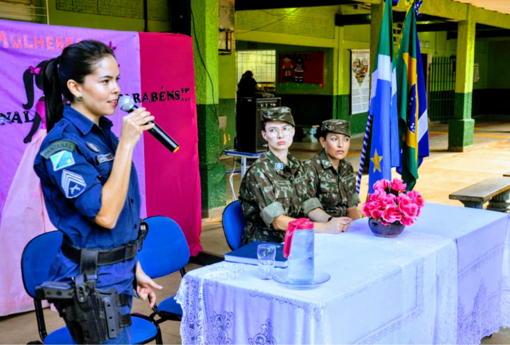 Aquidauana (MS) – Ainda no ciclo de palestras sobre o DIA INTERNACIONAL DA MULHER, os trabalhos de nossas POLICIAIS MILITARES FEMININAS, no tocante a conscientização e Segurança da Mulher, foram intensos nesta semana. Exemplo disso foi a palestra